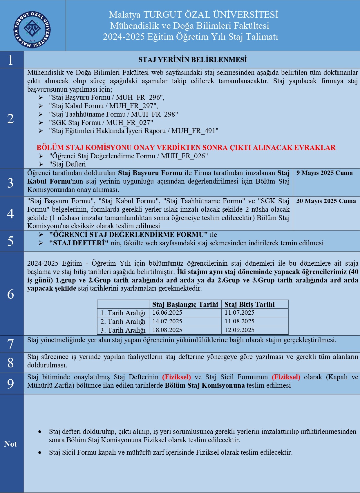 Mühendislik ve Doğa Bilimleri Fakültesi Staj Kabul Formu