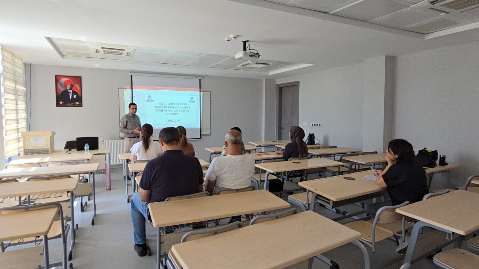 2024-2025 Bahar Dönemi Bölüm Akademik Kurul Toplantısı 13 Haziran saat 14.00'te İnşaat Mühendisliği Bölümünde gerçekleştirilmiştir.
